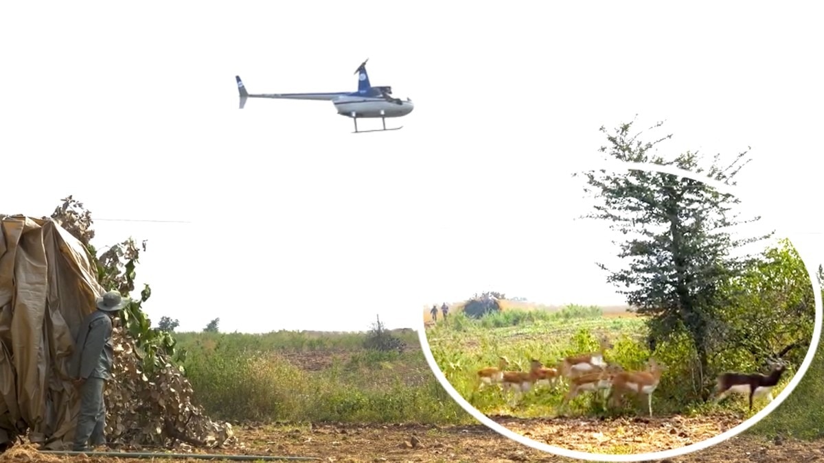This operation was conducted in Imlikheda village of the district. During this, Nilgai and black deer were caught using helicopter and Boma technique.